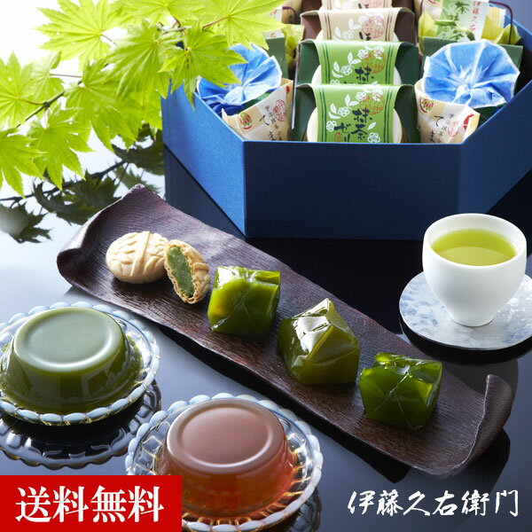 宇治抹茶を贅沢に使ったお菓子を六角の箱に詰めました。高級宇治煎茶とご一緒にお届けいたします。※ ご注意下さい ※この商品はネット限定販売です。店頭受取は不可となります。指定期間外はお届けできません。伊藤久右衛門の抹茶スイーツはさまざまなシーンのギフトとしても最適です【日々の心づかい、ちょっとした手みやげに】御祝・御礼・御挨拶・粗品・お使い物・贈答品・ギフト・贈りもの・進物・お返し【お祝いや内祝いなど祝儀の品に】引き出物・お祝い・内祝い・結婚祝い・結婚内祝い・出産祝い・出産内祝い・引き菓子・快気祝い・快気内祝い・プチギフト・結婚引出物・七五三・進学内祝・入学内祝※仏事用商品はお使いいただけません。【年忌法要など仏事の品に】お盆・新盆・初盆・お彼岸・法事・法要・仏事・弔事・志・粗供養・満中陰志・御供え・御供物・お供え・お悔やみ・命日・月命日・葬儀・仏壇・お墓参り・香典返し※慶事用商品はお使いいただけません。≪敬老の日特集/帰省みやげ特集≫掲載商品カテゴリトップ > 宇治抹茶スイーツ 涼菓六角箱 煎茶入 宇治抹茶スイーツ 涼菓六角箱 煎茶入 ◆宇治抹茶ゼリー 約80g×2個◆ほうじ茶ゼリー 約80g×2個◆宇治抹茶くず便り 約40g×2個◆宇治抹茶わらび餅 約40g×2個◆抹茶ひと口羊羹茶味茶楽 約40g×2個◆宇治抹茶小最中てまり ×4個◆高級煎茶「清風」 100g×1袋≫商品内容の詳細はこちらから◆外装サイズ約縦23.5cm×横26.3cm×高さ7.5cm◆総重量約1020g◆アレルゲン卵・乳≪出荷日に制限がございます≫ 【2017/06/02?2017/10/01までのお届け限定】商品です。期間外を指定された場合、期間内のお届け日に変更いたします。お届け日指定のない場合、手配可能な最短日のお届けになります。ご希望のある方は必ずご指定ください。※配送に2日間かかる地域へのお届けは最短6/3となります