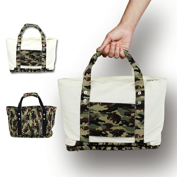 トートバッグ ファスナータイプ シューズ収納付き 男女兼用 キャンバスバッグ商品説明 ・旅行やアウトドア、スポーツ、ジム通いや、海水浴、マザーズバッグなどなど、その他様々な場面で大活躍! たくさんの荷物が入る迷彩柄の多機能トートバッグです。 ・内側には取外し可能なポーチ付きでちょっとした小物の持ち運びにも便利。 ・合計5ヶ所の収納スペースがあるのでたっぷり収納可能。 ・外側底面はシューズ収納スペースとして使用可能。 ・1泊程度の温泉旅行や、いろんなスポーツでの移動、 特にゴルフコンペ景品やプレゼントにも喜ばれています。 ※取付・取扱説明書等は付属しておりません。 ※ファスナー・ホック・金具等の付属品は正しくお使い下さい。 ※カラーにつきましては、ケータイ、パソコンのモニター環境により 若干異なって見える場合がございます。予めご了承下さい。 【商品仕様】 ・素材:表面・・・綿 内側・・・ポリエステル ・サイズ:横幅49cm × 縦幅30cm × 厚さ15cm ・商品カラー:全2色(ホワイト/グリーン) 商品内容 ・シューズケース付きトートバッグ ×1送料詳細こちらの商品は 送料無料 です。