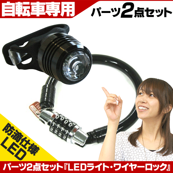 小型(雑貨・自転車パーツ等) 商品名 自転車に便利なパーツ2点セット LEDライト ワイヤーロック サイズ(約) ・ライト重量:30g ・ワイヤーロック:12Φx300mm 主な特徴 ■ライト ・USB充電式LEDライト ・点灯パターン:点灯・High・Mid点滅 ・充電時間:約2時間 ・使用電池:内蔵リチウムイオンバッテリー(3.7V 220mAh) ・防滴仕様:IP×4相当 ・付属品microUSBコード ■ワイヤーロック ・4桁ナンバーロック ・暗証番号設定可能 ・コンパクトにまとめ軽量化を図り持ち運びが簡単な斉工舎製 セット内容 LEDライト ワイヤーロック自転車に便利 お得なパーツ2点セット LEDライト ロック(鍵) 【3,000円(税抜)以上のお買物で送料無料】 ※ お買い物合計金額が2,999円(税抜)までは全国一律780円の送料を頂きます。 ※ お買い物金額に関わらず、沖縄および離島へのお届けは実費負担となり、正式な金額は当店よりメールにてご連絡を致します。 ※ サイズ表記は、商品実物の実寸となります。すべて手作業にて採寸を行っております為若干の誤差が生じる場合があります。予めご了承下さいませ。 ※ メーカー都合にて予告なく仕様が若干変更になる場合も御座います。予めご了承下さいませ。
