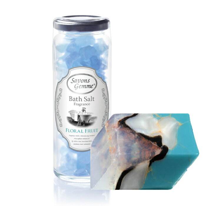 香りで選ぶサボンジェムセット サボンジェム フレグランスソープ ミニとバスソルトのセット フレグランスソープ・ターコイズ 114g / バスソルト・フローラルフルーツ200g フローラルフルーツの香り メロンの香りを強調した果樹園の芳香にクチナシとキンセンカの花をプラスしました。 香りに包まれたバスタイム、発汗効果でポカポカの身体で心地よい睡眠を。 【エプソム塩・死海の塩・カリブ海塩使用】 ●本品は食べ物ではありません。●肌に異常のある時、肌に合わない場合はご使用をお止めください。●循環機能(追い炊き)は使用しないでください。●使用後は浴槽に残さず、十分に洗い流してください。●お洗濯への残り湯の使用はおすすめできません。●高温多湿、直射日光を避け、乳幼児の手の届かない所に保管してください。 商品仕様 製品名:バスソルト メーカー:savons gemme 製品重量:200g 同梱配送について 複数商品ご購入のお客様で、'注文者名'と'お届け先名'が同一の場合は、送料削減のため可能な限り同梱配送いたします。 もし、一つの箱に収まり切らない場合は、複数の箱に分けて配送いたします。同梱配送を希望しない場合は、お問合せ下さいますようお願い申し上げます。 株式会社ラウンジ・デコ (サボンジェム事業部) tel.022-398-5658 ご注文前にメール設定をご確認ください 当店ではご注文から3?5営業日以内にshop.rakuten.co.jpというドメインから、ご注文確認メール、もしくは在庫・納期やお支払い方法に関しましてのお知らせ、お問い合わせの回答を送信しております。 ■メールドメイン設定(shop.rakuten.co.jpの許可)、迷惑メールフォルダのご確認をお願い申し上げます。 ※当店からのメールがご確認いただけない場合は、当店までご連絡お願い申し上げます。 株式会社ラウンジ・デコ (サボンジェム事業部) tel.022-398-5658